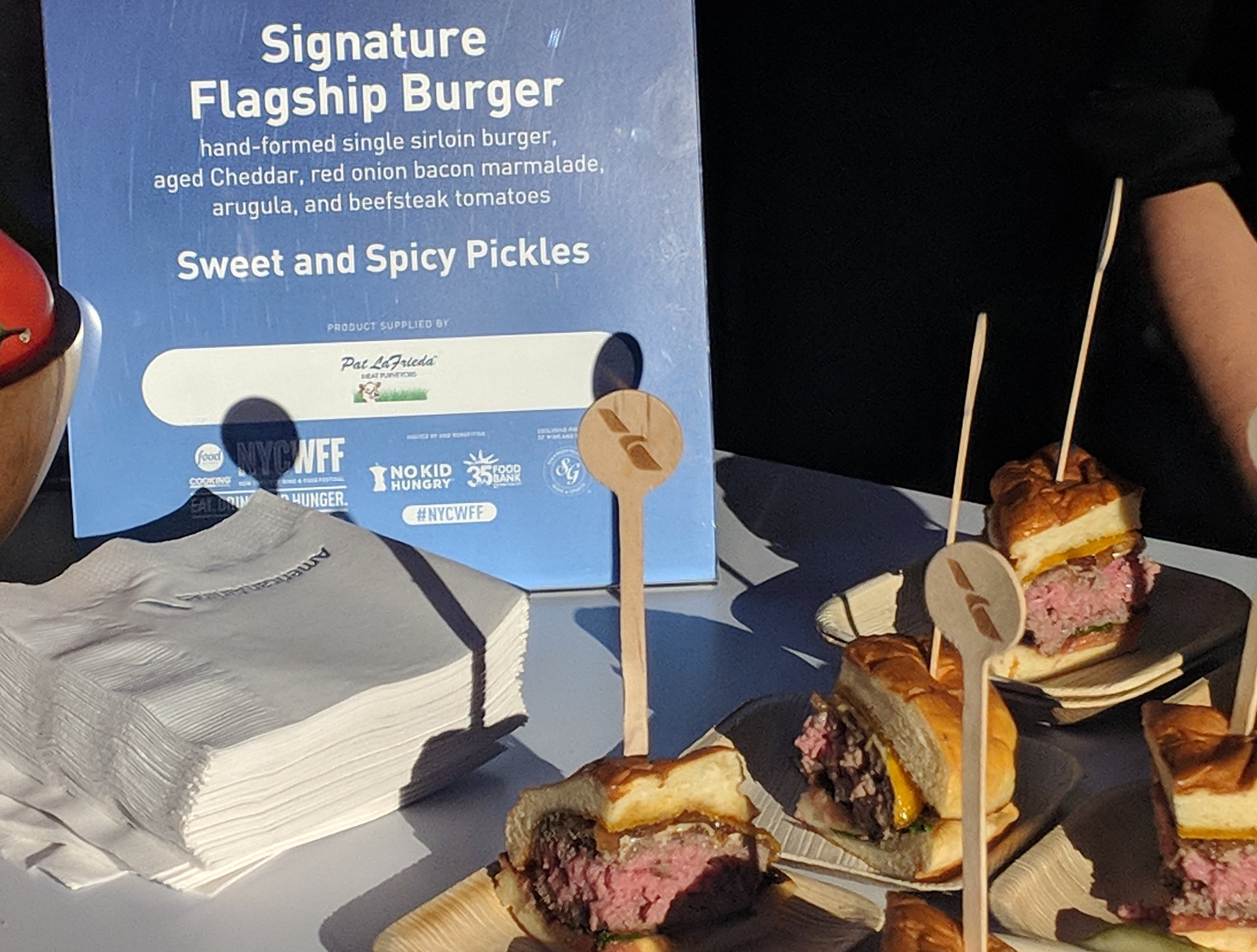 The airline put its burger on display at this weekend's Burger Bash as part of the New York City Wine and Food Festival; we were in attendance as a guest of Capital One.