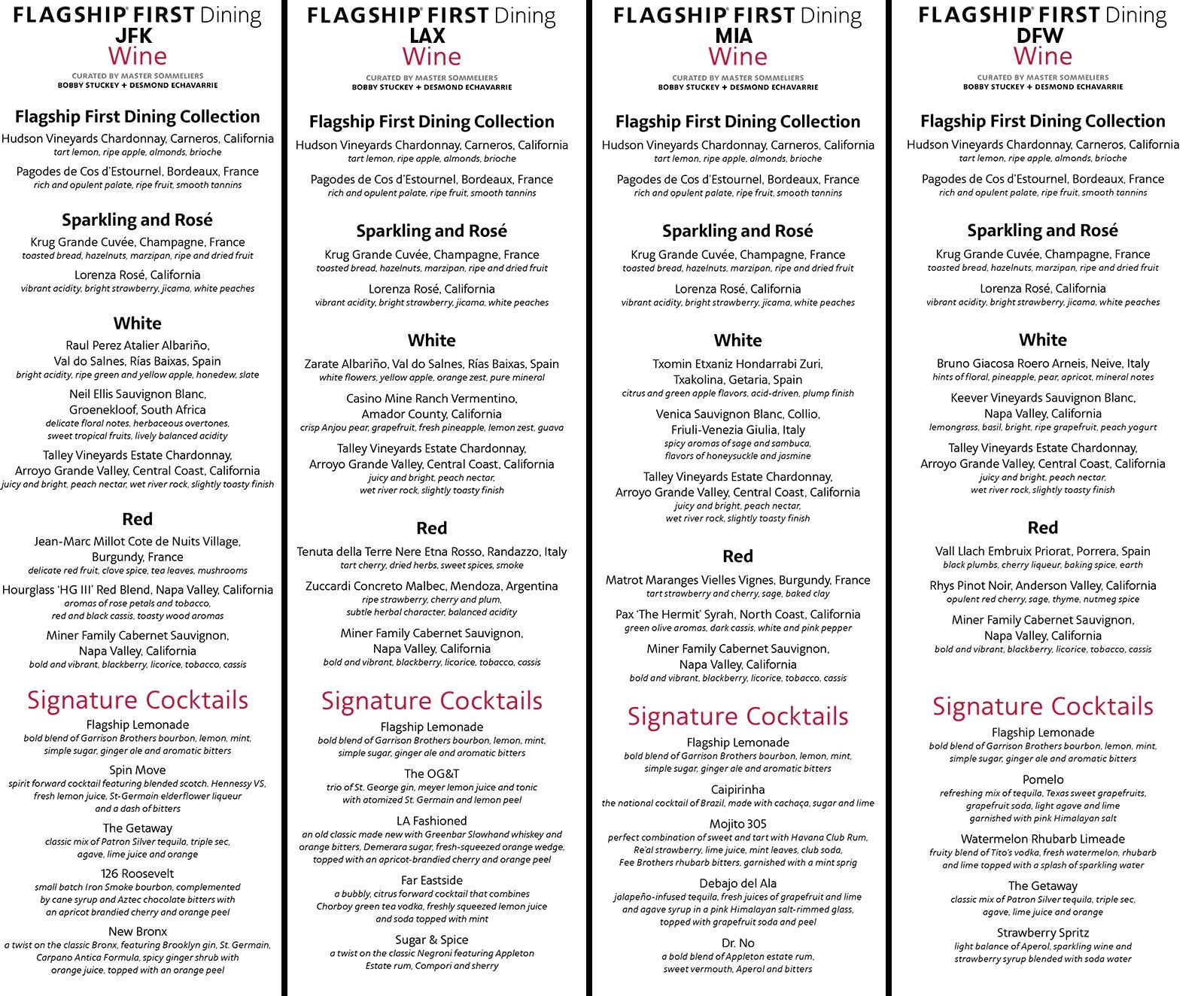 American also is rolling out new options for its Flagship Lounges and Flagship First Dining. Scroll down to see the full list of updated options for Dallas/Fort Worth (DFW), Los Angeles (LAX), Miami (MIA) and New York JFK.
