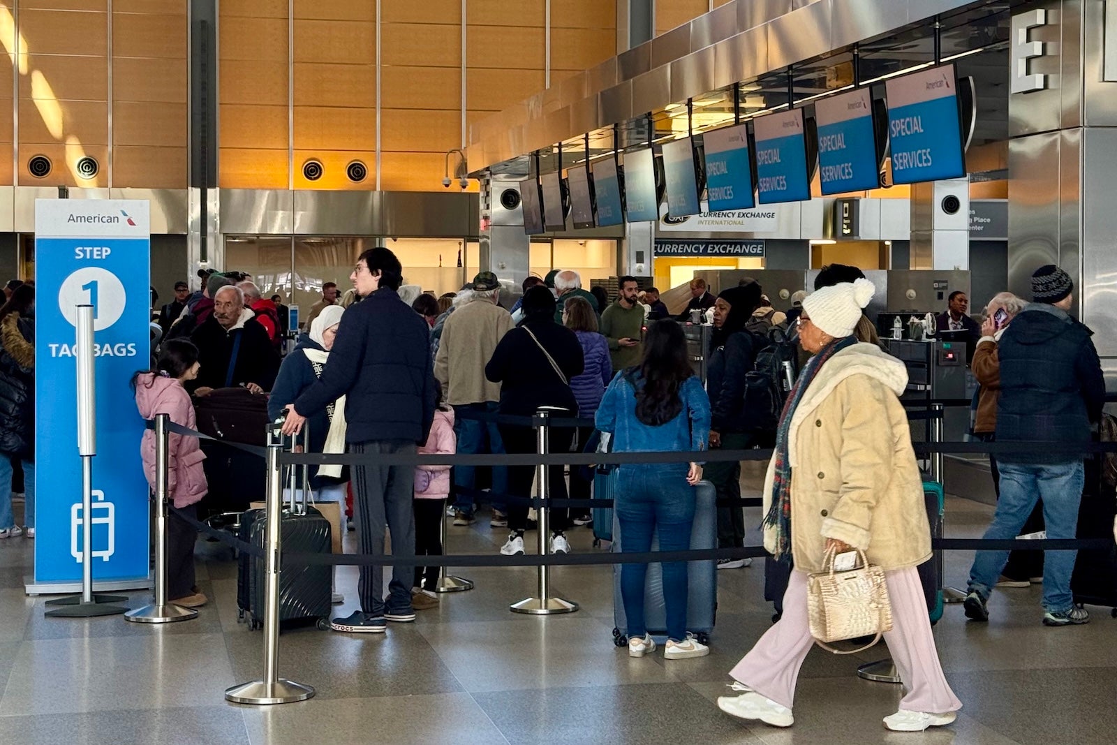 By 12:45 p.m. EST Tuesday, American had canceled an additional 879 mainline flights, according to data from FlightAware. That's about 30% of the day's schedule.