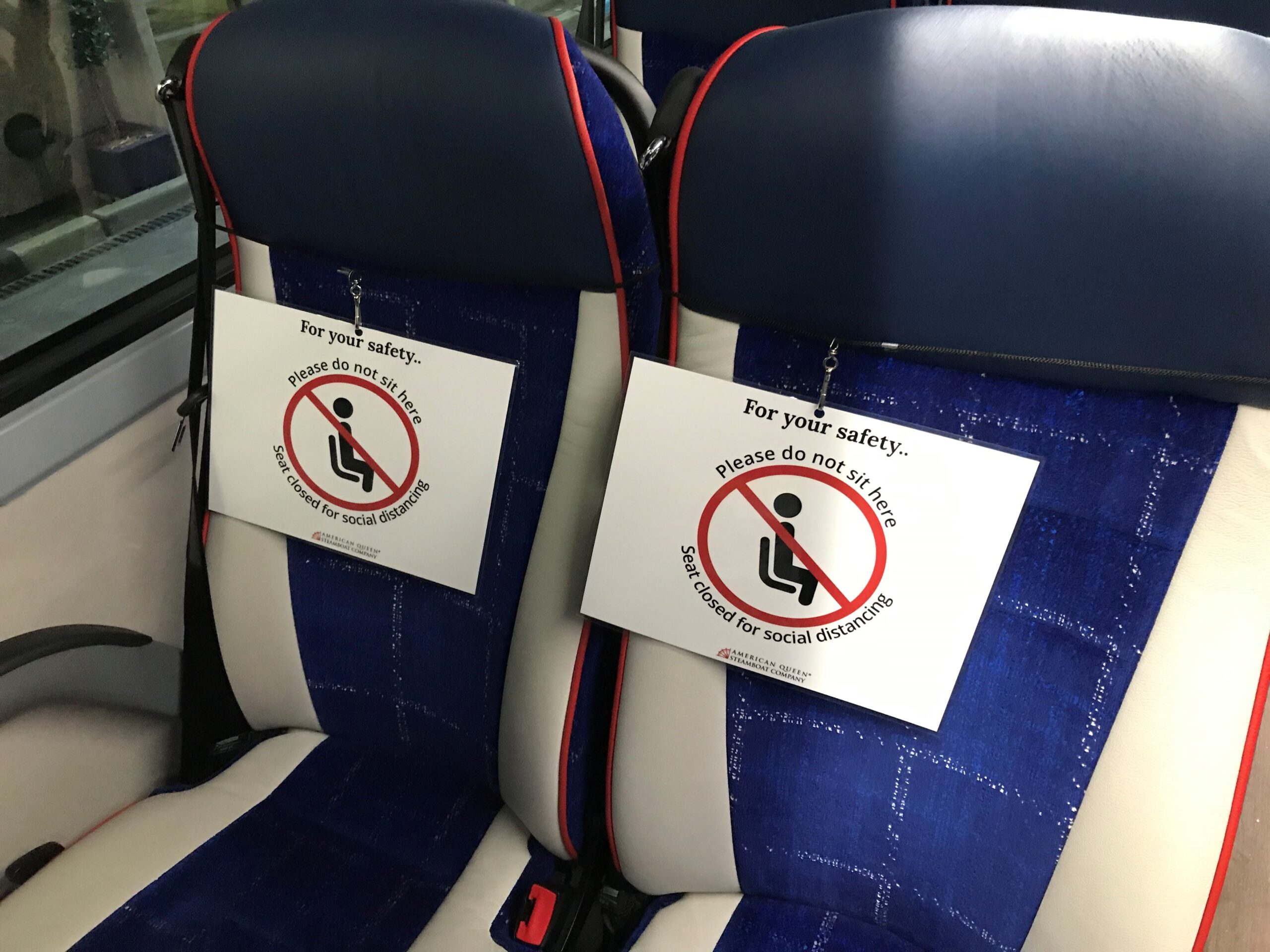 In one more effort to keep passengers a safe distance apart, the line also is blocking off every other row of seats in the motorcoaches it uses for touring in ports.