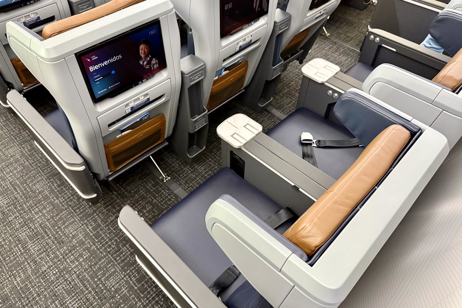 Even the movable headrest feels far more premium than anything American has done before. The tan coloring combined with the white flight symbol offers a nice contrast and gives the cabin a nice pop of color.