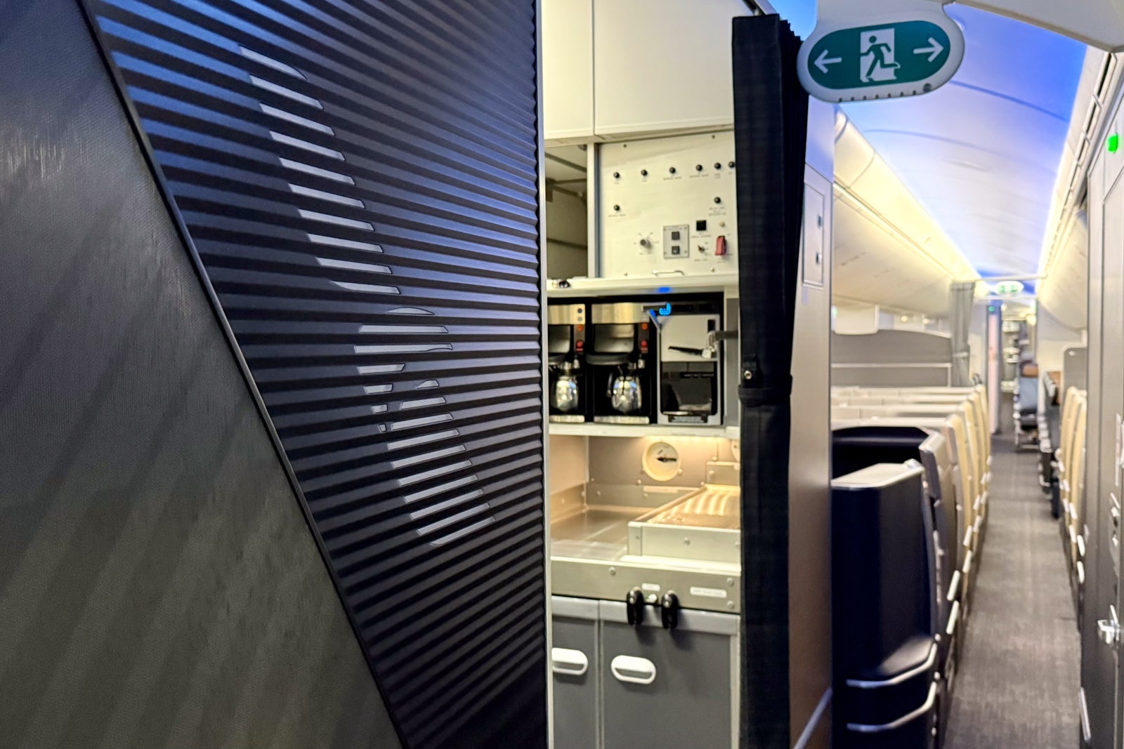 As you enter the 787-9P from Door 2L, you'll see American's signature flight symbol logo illuminated behind a slatted black design. This provides a nice modern welcome touch and will hopefully help usher in a sense of serenity during the boarding process.