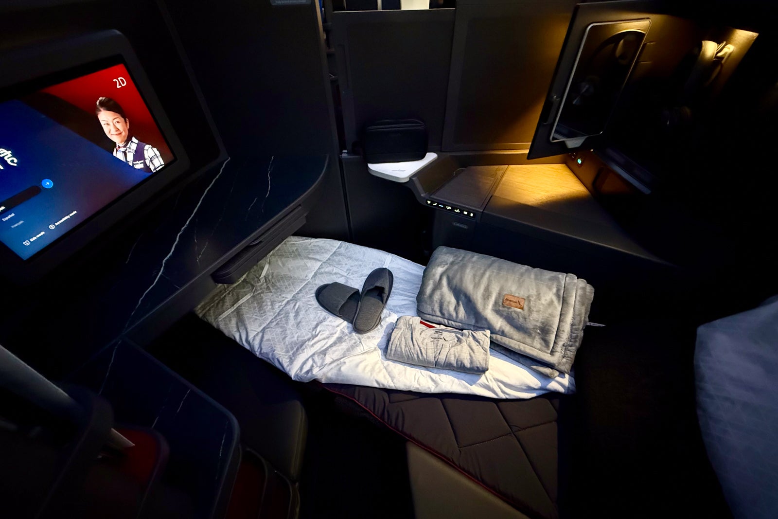 All seats convert into 79-inch-long lie-flat beds, and the sliding doors extend for privacy. However, the sliding doors won't be enabled from day one because the airline is still waiting for Federal Aviation Administration approval to use them as doors.