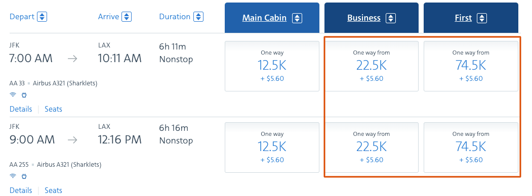 When looking at the premium transcontinental route between JFK and LAX, there remains a sizable gap in pricing between Flagship First and Flagship Business. That difference in pricing widens even more when you look at it from an AAdvantage redemption perspective (both searches are random dates in October 2020).