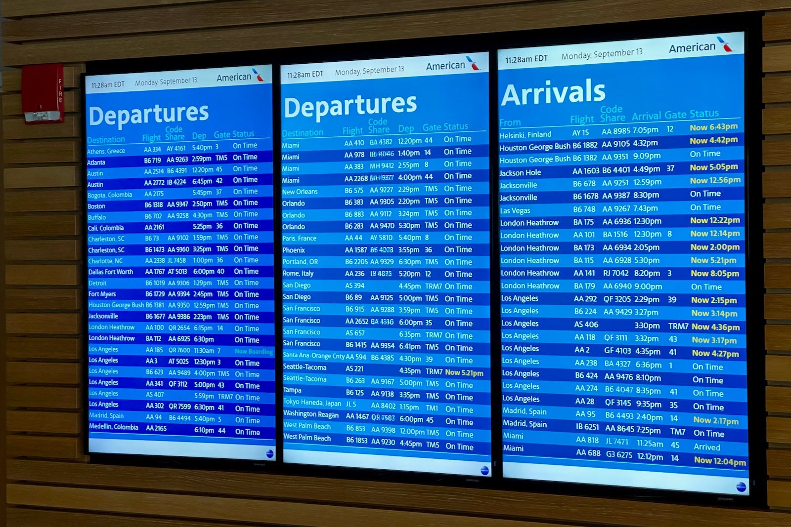Along the way, I took a look at the departure monitors and was impressed to see all the JetBlue codeshares listed on the AA boards, along with the flight status and instructions to proceed to Terminal 5.