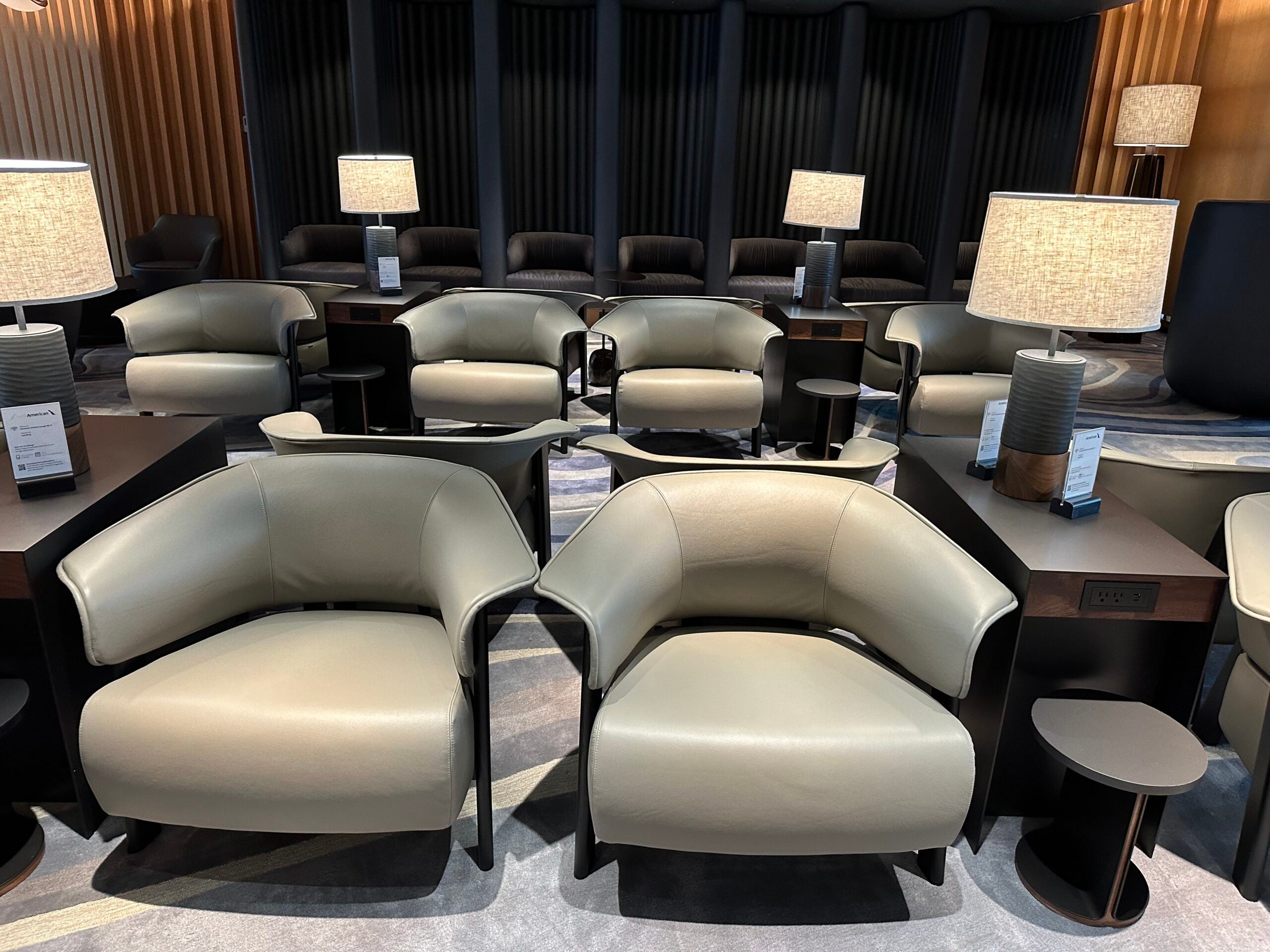 Despite the lack of privacy, the lounge provides plenty of seating. Each seat contains USB ports and outlets on both sides, making them easy to find.
