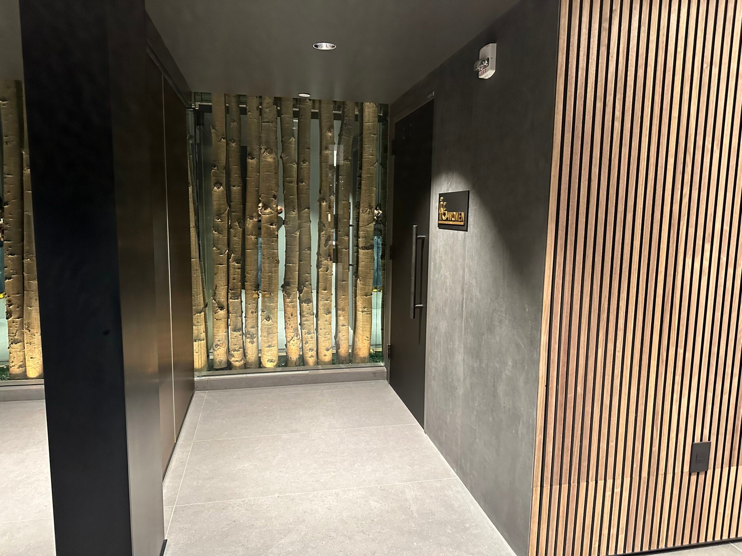 The Denver Admirals Club also took cues from Newark's cherry blossoms, modified with a local touch to include a set of Aspen trees on the walls as you enter the restrooms.