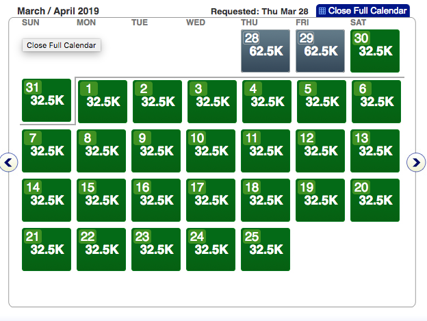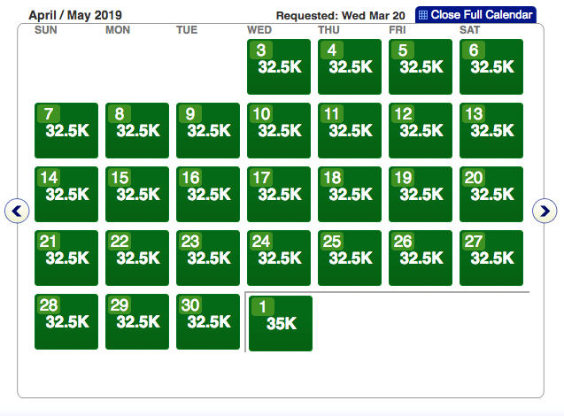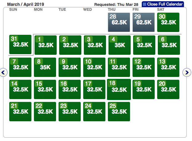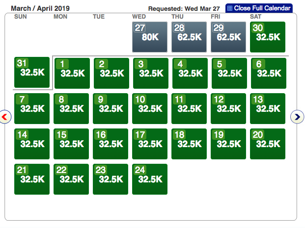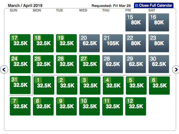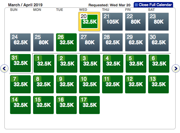 Head over to AA.com and plug-in your preferred departure city and check if you can find sAAver awards. Mid-March seems to be tougher to find cheap flights, while late March and all of April is wide open. Here a few examples of award space in late March and April: