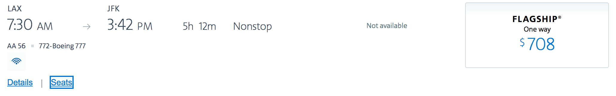 As you can see, $708 one-way is a steal for a ticket technically showing up as Flagship First. It's unclear if you'll be able to access to Flagship First Dining, a sit-down, restaurant-style dining experience available only to those passengers traveling in first class on a three-cabin international or premium transcontinental flight.