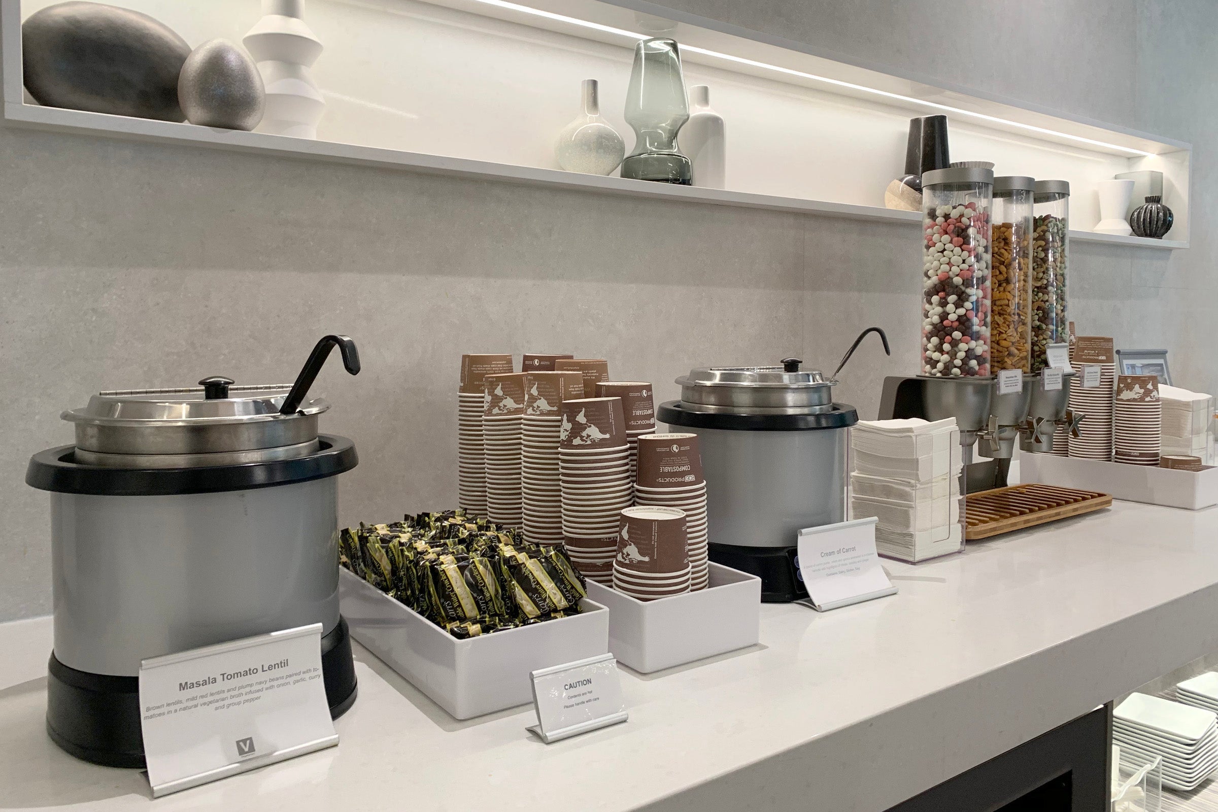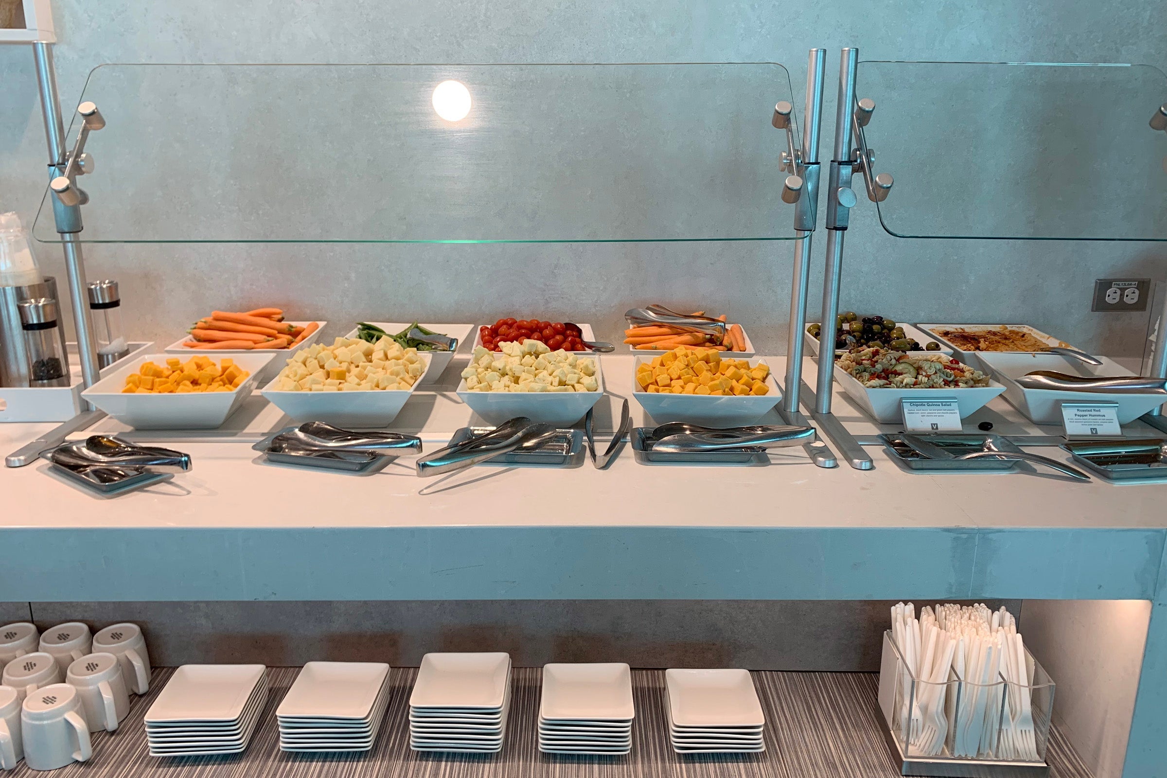 There was a healthy supply of cheese cubes, a staple of US-based airline lounges, along with some carrot sticks, tomatoes and chilled salads.