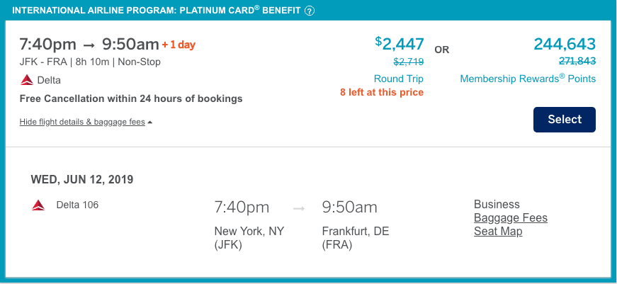 All searches reference the regular fare as well, which I found to be accurate every time — Amex lists the non-discounted fare as $2,719 above, and that's indeed what you'll pay if booking directly with Delta.