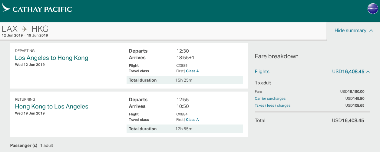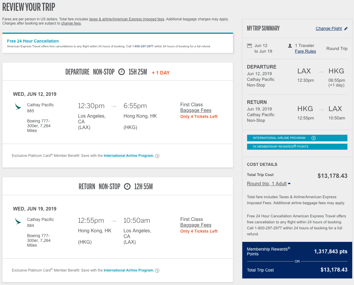 You will indeed pay more for the same flights when booking directly through Cathay — moving forward, if you're in the market for any premium-cabin fares, it certainly makes sense to do a quick search through Amex Travel, too.