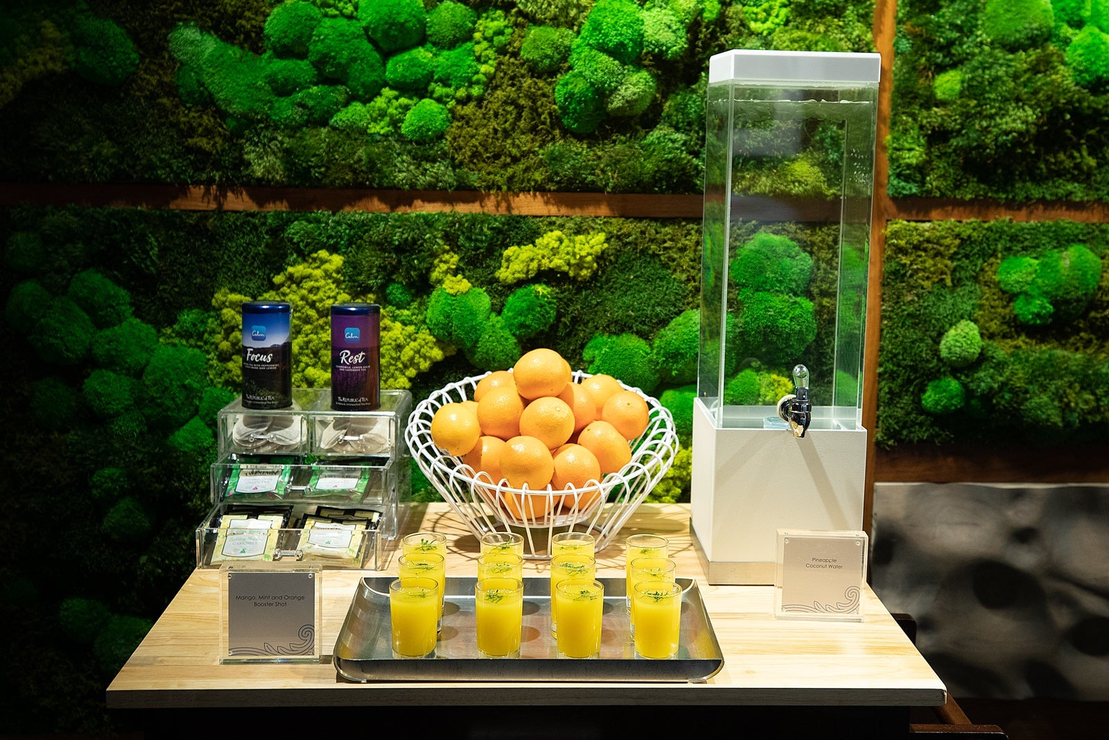 In addition to free access to the Calm content, the new area is stocked with a health and wellness cart that features a wide variety of healthy beverage options, including hot flavored teas, coconut water, blended juices, immune booster drinks and more.