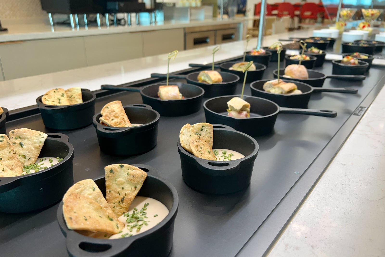 While I didn't get a chance to sample the offerings, the lounge was putting together a tasting during my visit. The presentation looked quite polished, and entrees such as French toast royale and impossible meat sliders sounded tasty.