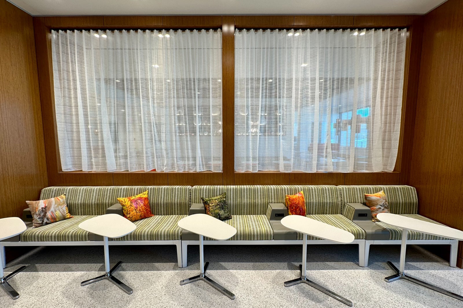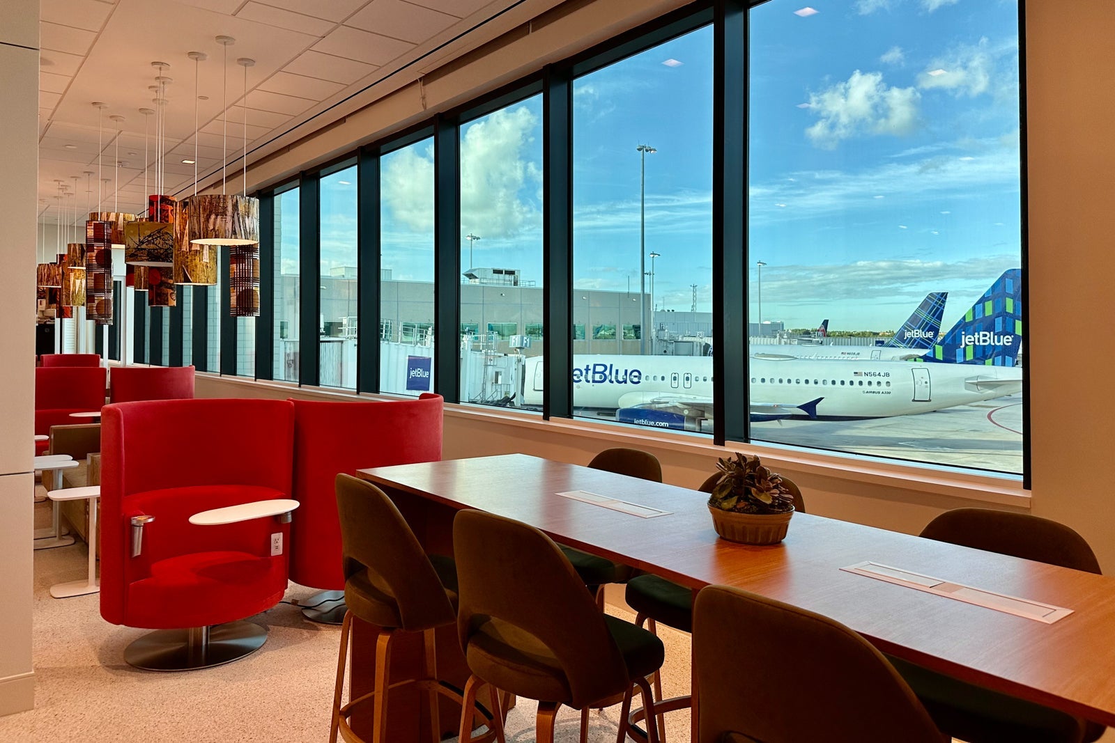 No matter where you sit, you'll enjoy plenty of natural light thanks to the lounge's tall west-facing windows. Aviation enthusiasts will undoubtedly appreciate the view of the ramp and the runways in the distance, while others may just appreciate the last few minutes of Florida sunshine through the tinted windows.