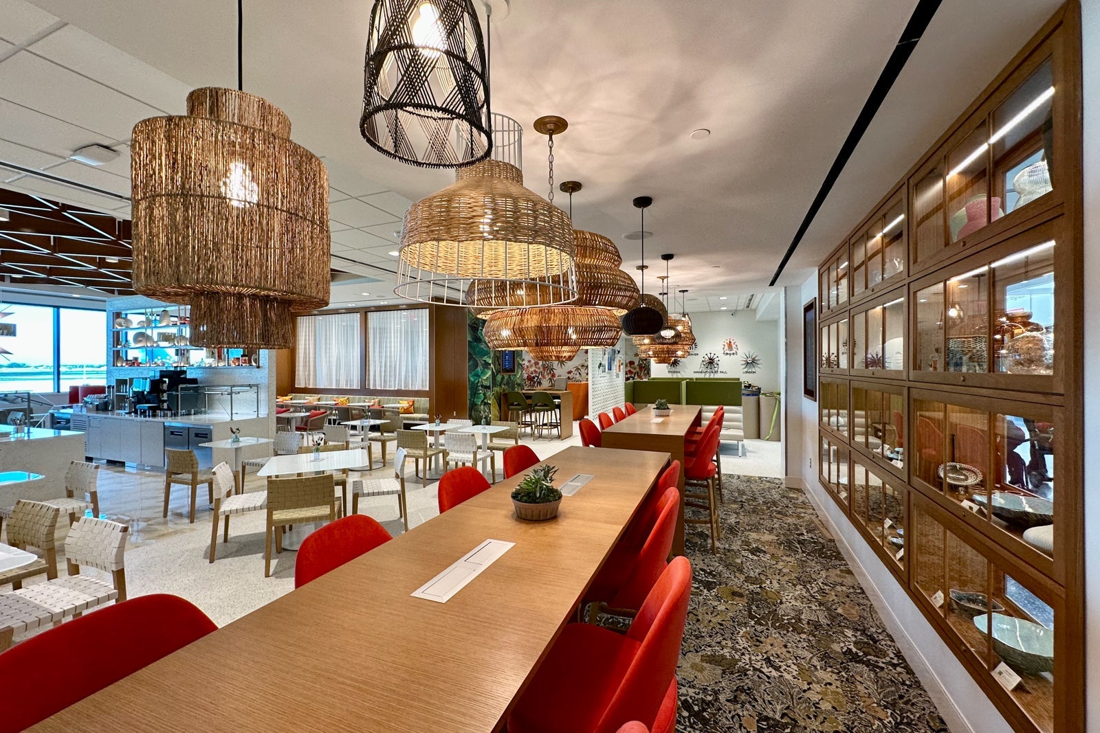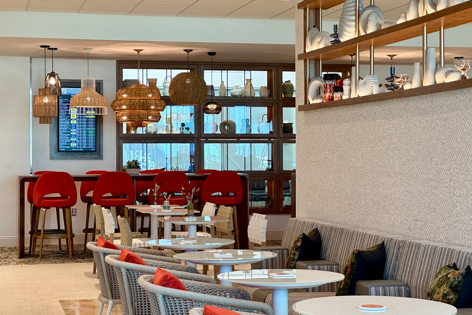 Note, however, that there are no phone booths or individual workstations in the lounge, which makes sense given that the airport primarily serves a leisure market.