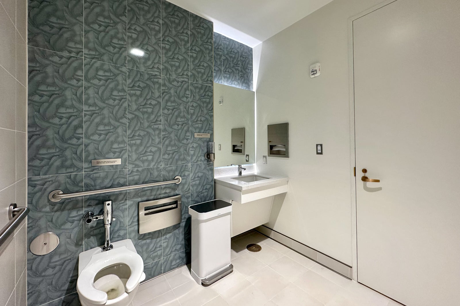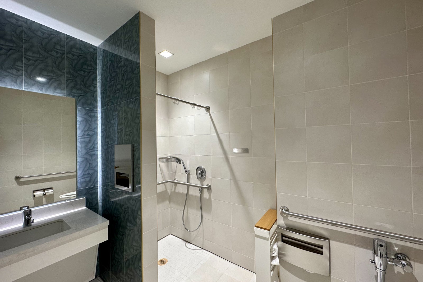 In terms of amenities, the lounge features two individual restrooms. Given that the lounge can comfortably seat over 150 people, there'll likely be a queue for the restrooms when it's busy.