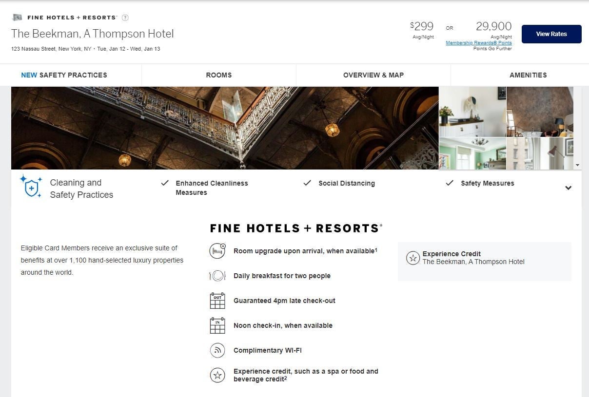 As I was mapping out my one-night getaway, I decided I would get the most value by booking through the American Express Fine Hotels & Resorts program (FHR).
