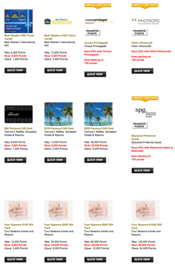 Amex is also discounting hotel gift cards. For example you can now get Best Western, Fairmont, Four Seasons, Mandarin Oriental, Marriott and Ritz-Carlton gift cards in the following increments: