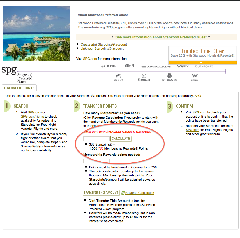 1,000 750 Amex points = 333 Starwood, a 1:.44 ratio