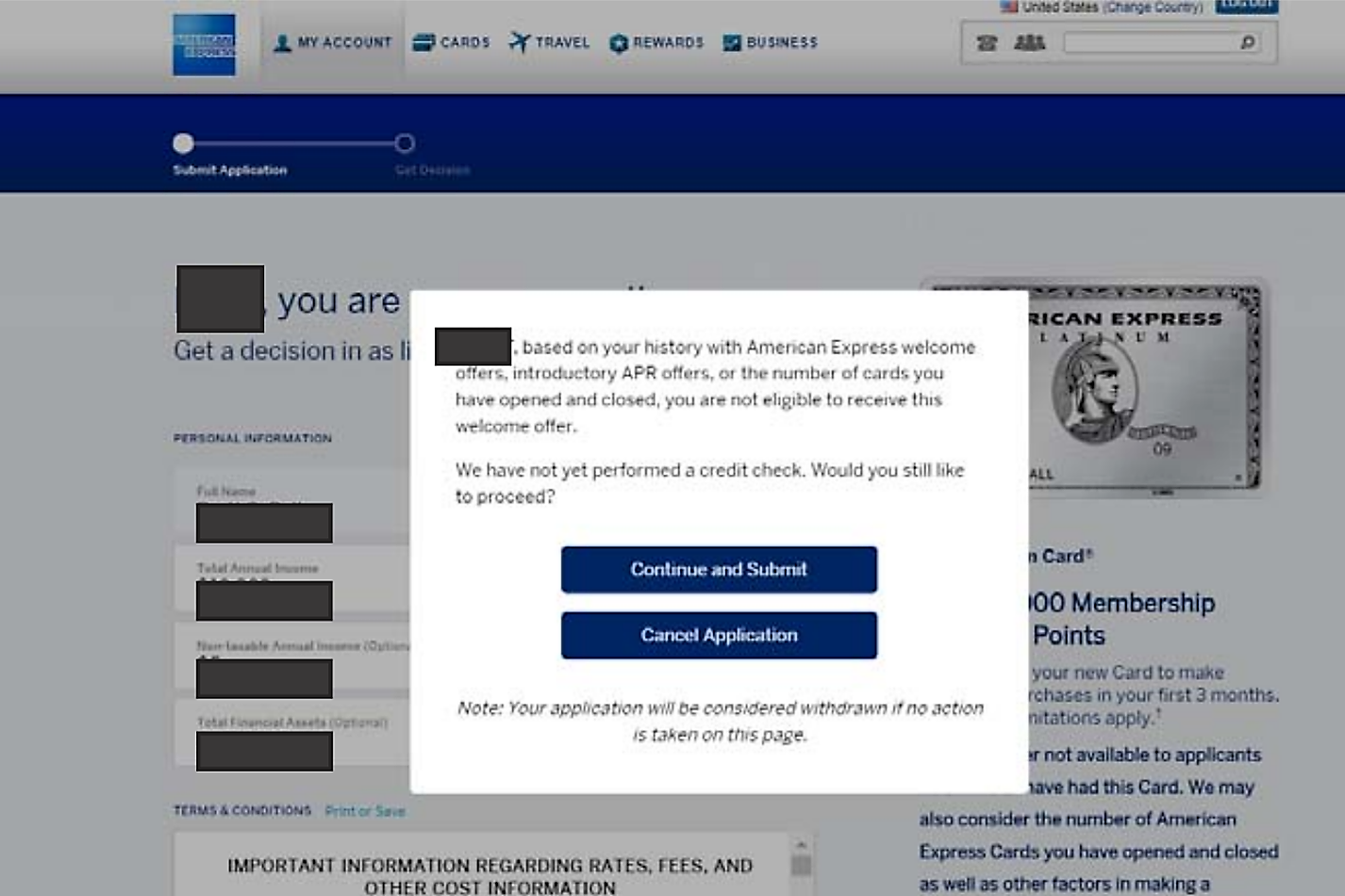 Luckily this message didn't pop up for me when I applied for — and was accepted for — the Hilton Honors Aspire Card from American Express.
