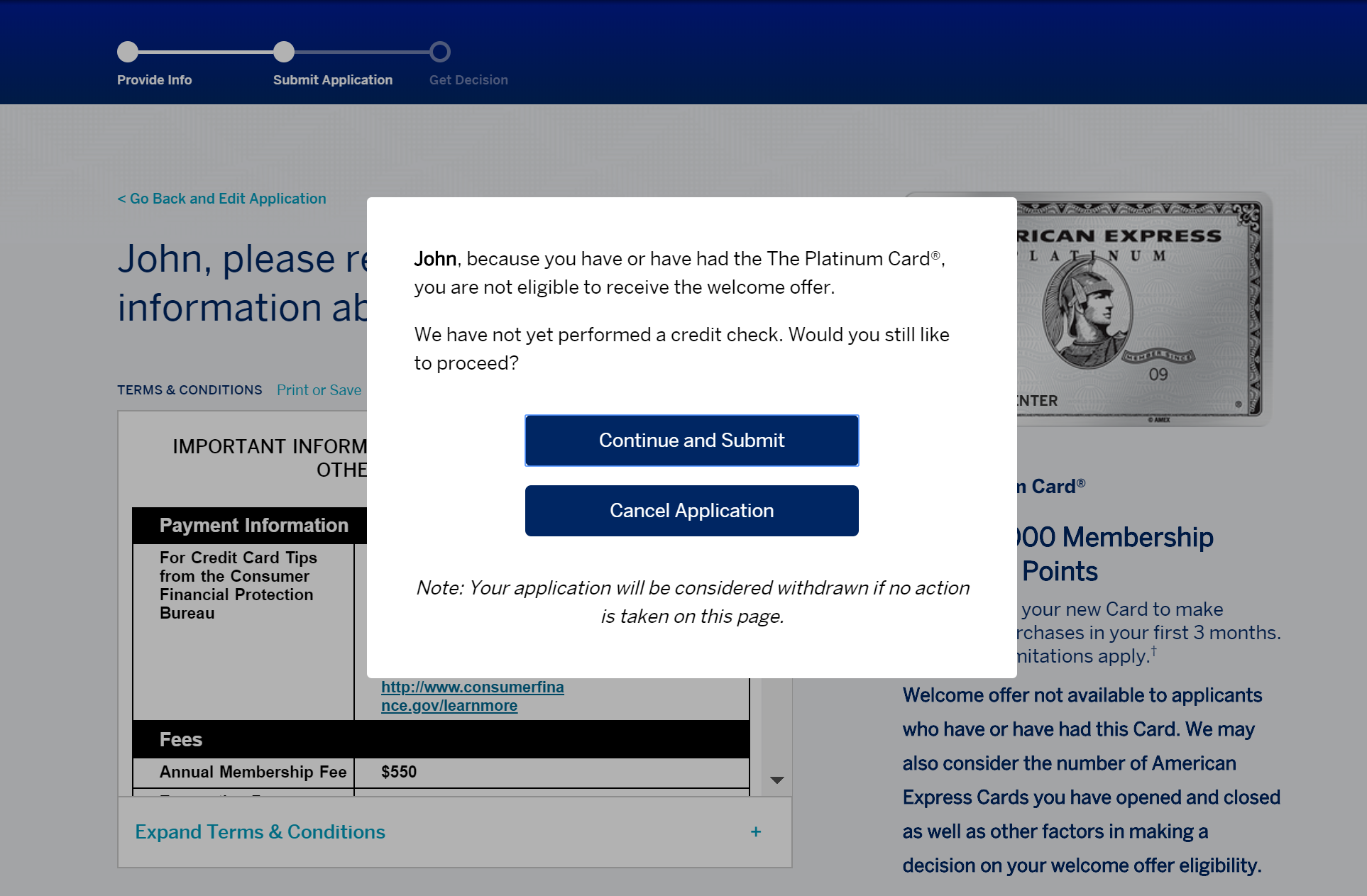 Because you have or have had The Platinum Card, you are not eligible to receive the welcome offer.