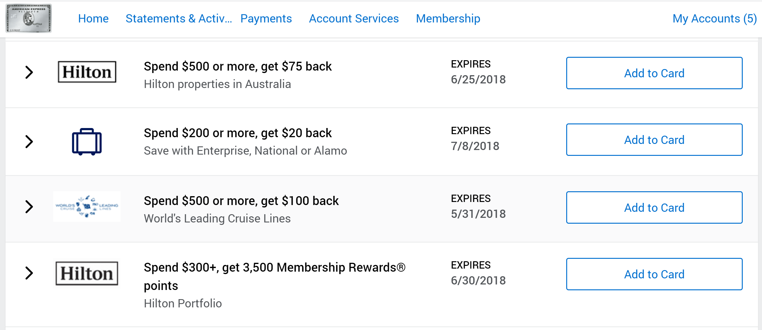 Remember that Amex Offers are targeted, so not every American Express card will be included in this promotion. In order to see if you've been targeted — and to enroll in the offer — log in to your AmericanExpress.com account. Scroll down to the "Amex Offers and Benefits" section. (You may need to click "Load More" to see the offer.)