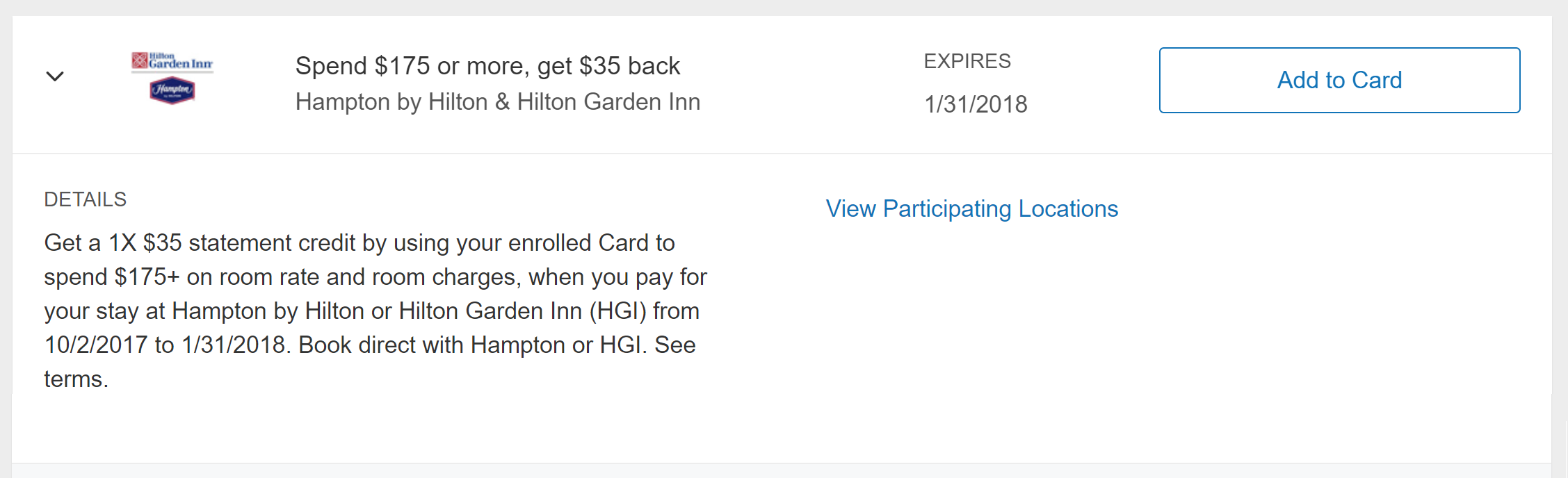 5. Hampton by Hilton & Hilton Garden Inn: Spend $175 or more, get $35 back