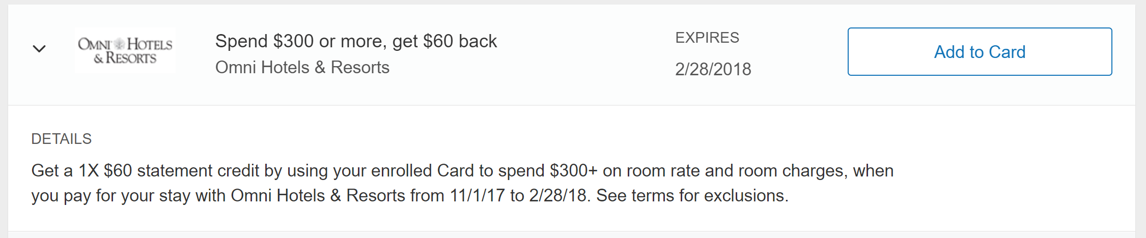 6. Omni Hotels & Resorts: Spend $300 or more, get $60 back