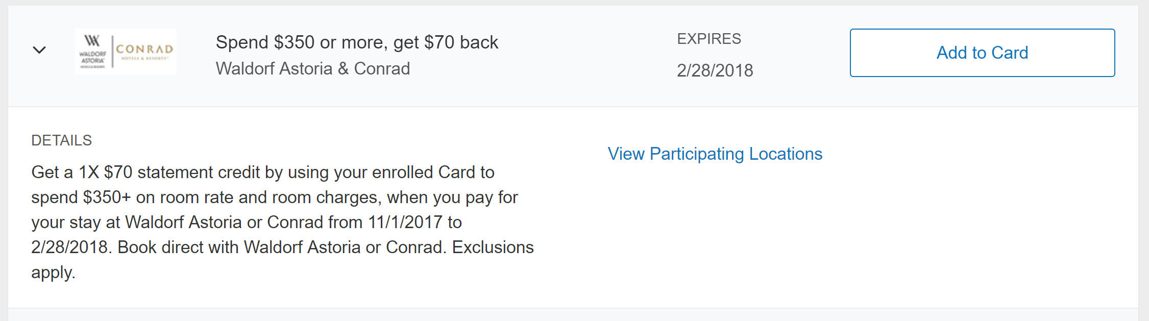 Here are the hotel offers I'm finding right now across my American Express accounts: