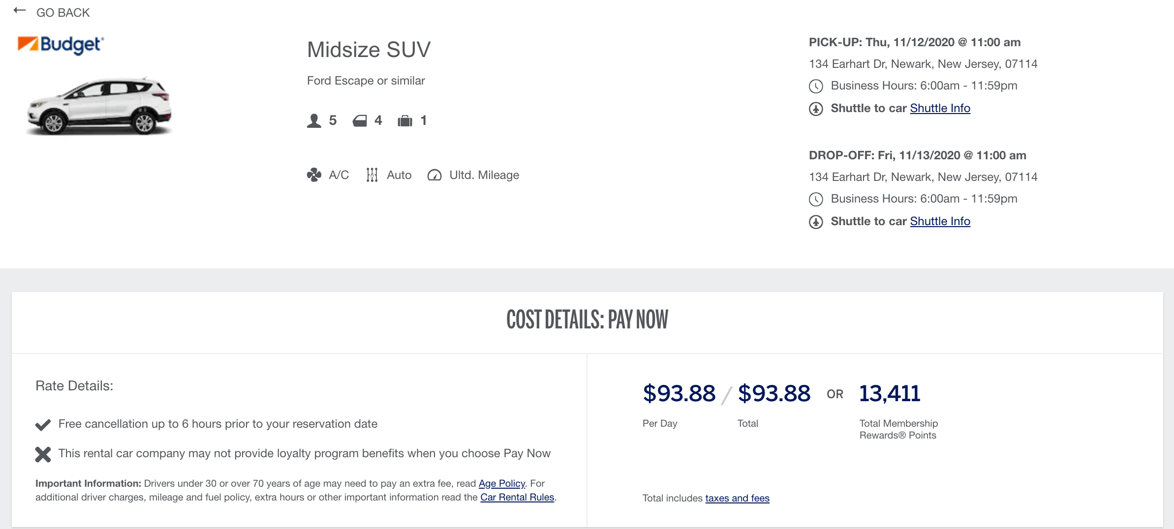 Redeem Membership Rewards for car rentals