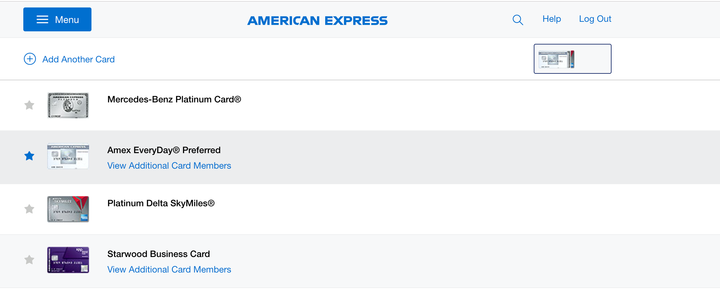 This meant sorting past that account every time I logged in, just to get to the Amex accounts I use and check more frequently. But now, Amex allows you to star the account you want to view first when you access your online account. In my case that is currently the Amex EveryDay Preferred, but for you it might be the American Express® Gold Card in order to earn 4 points per dollar at restaurants worldwide and US supermarkets (up to 25,000 per calendar year; then 1x) or The Blue Business®️ Plus Credit Card from American Express to earn 2 points per dollar on the first $50,000 in charges per year (then 1x).