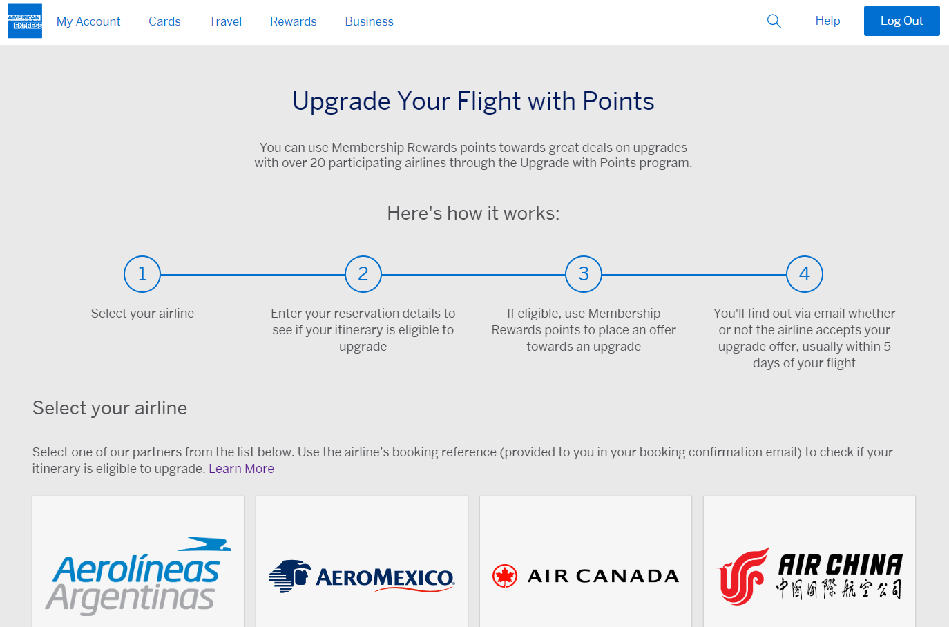 Starting today, May 1, American Express is letting cardmembers with Membership Rewards-earning cards use their points to bid on flight upgrades. The new "Upgrade With Points" program is launching with 21 airline partners, allowing cardholders the option to "use Membership Rewards points, or a combination of points and dollars" to bid on airline seat upgrades.