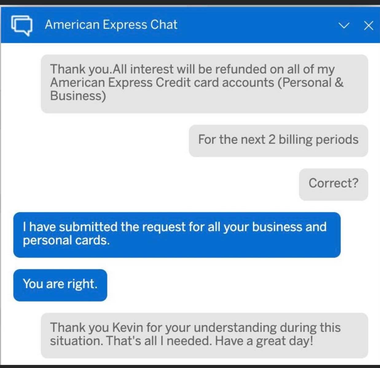 Over the weekend several TPG readers commented in our Facebook groups they had received relief from interest, late fees and other fees on both their personal and business American Express cards when requesting help over the chat feature on the American Express website.
