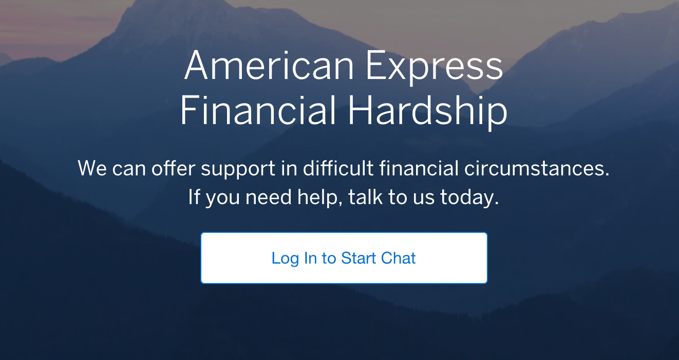 On the American Express Financial Hardships page, you can log in to your regular Amex accounts and begin a chat session with a live rep to evaluate your individual situation.