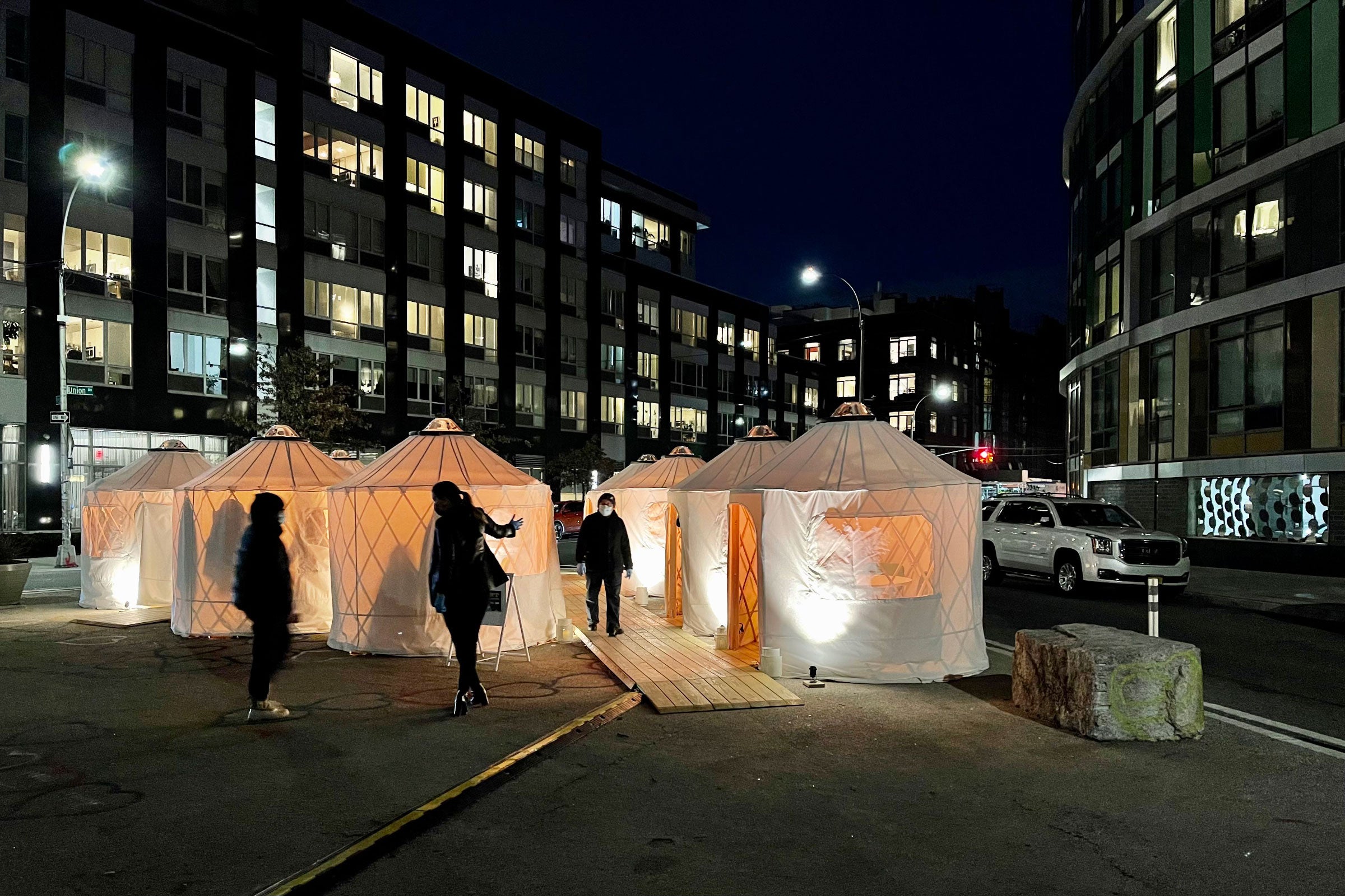 That isn’t the case across the board, though. A handful of top restaurants throughout the U.S. have teamed up with American Express and Resy to build safer “yurt villages,” where diners can eat and drink in their own private space, maintaining distance from other guests.