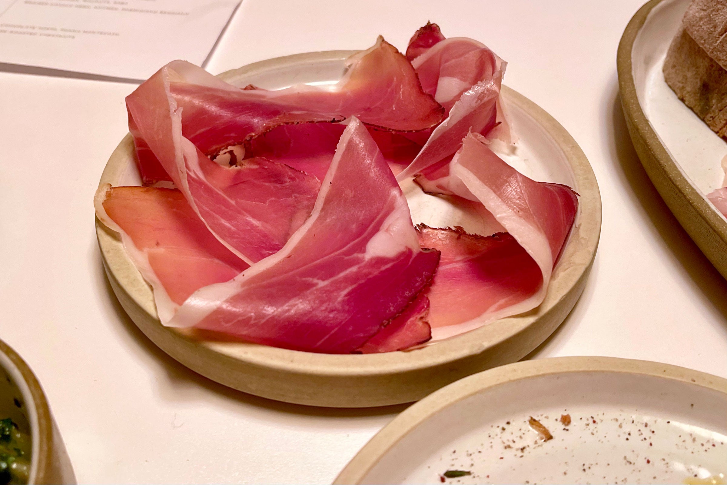 Next up, the speck was a bit lighter, but still full of flavor, and equally delightful with a small piece of bread.