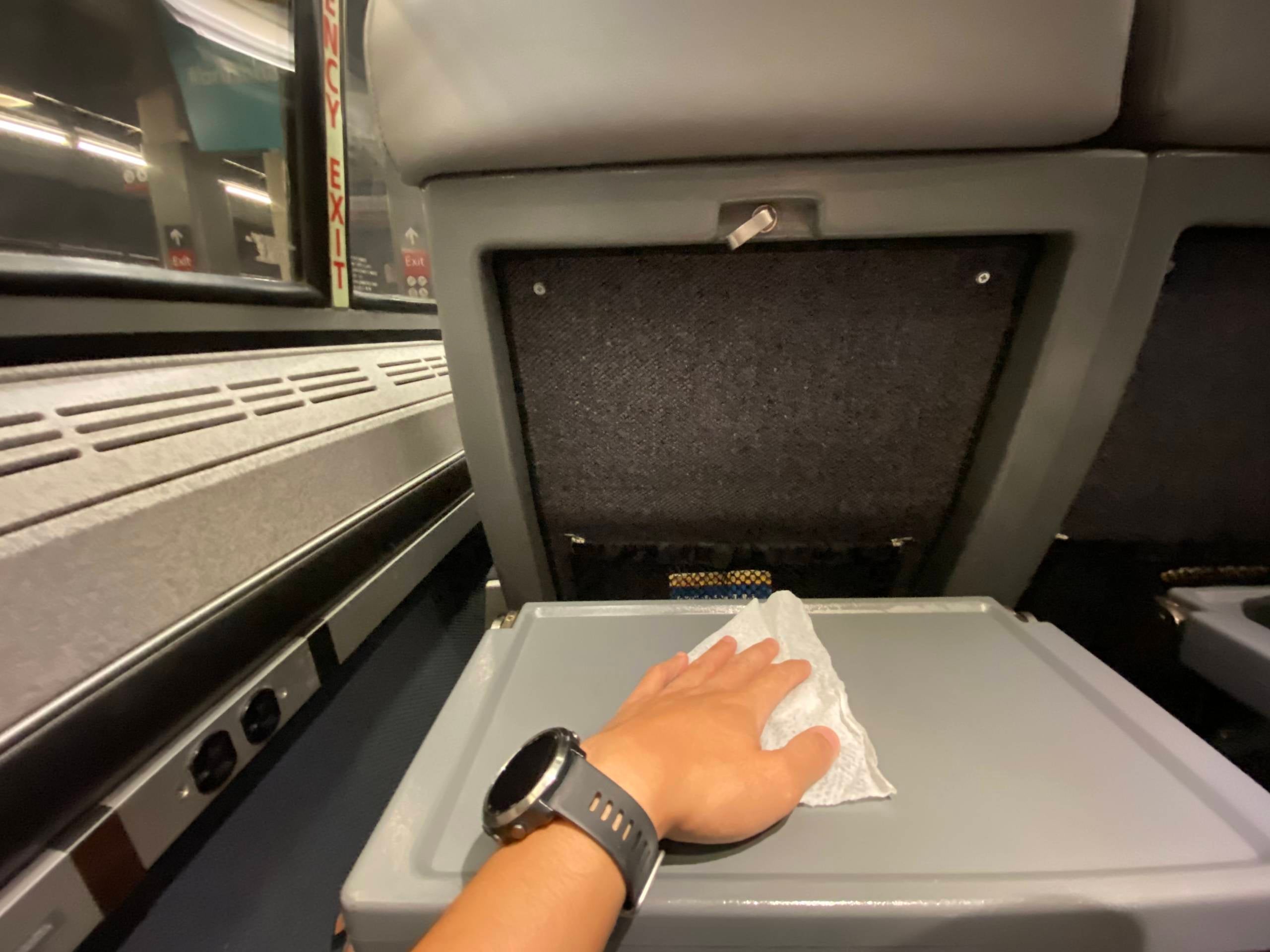 Unfortunately, while Amtrak touts its cleanliness initiatives, I found my tray table had crumbs and a slightly sticky residue. It's nothing a sanitizing wipe couldn't fix, but I was a bit disappointed that the train wasn't as clean as it should have been.