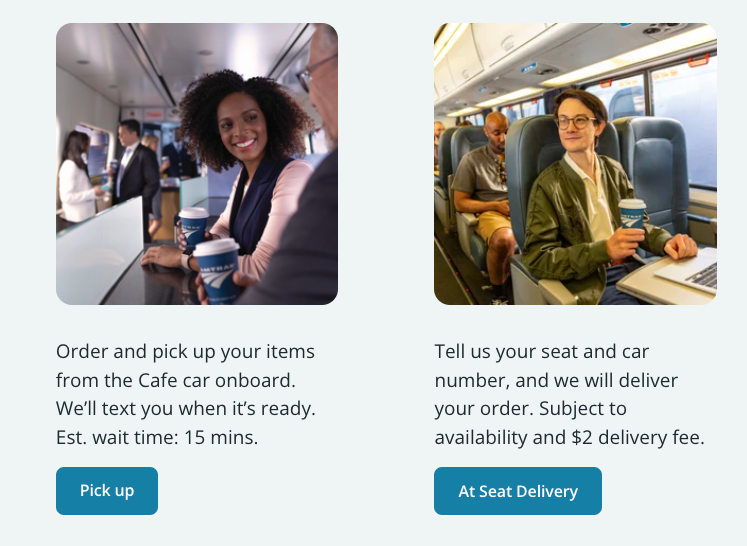 Amtrak is testing in-seat delivery, online ordering from the cafe car