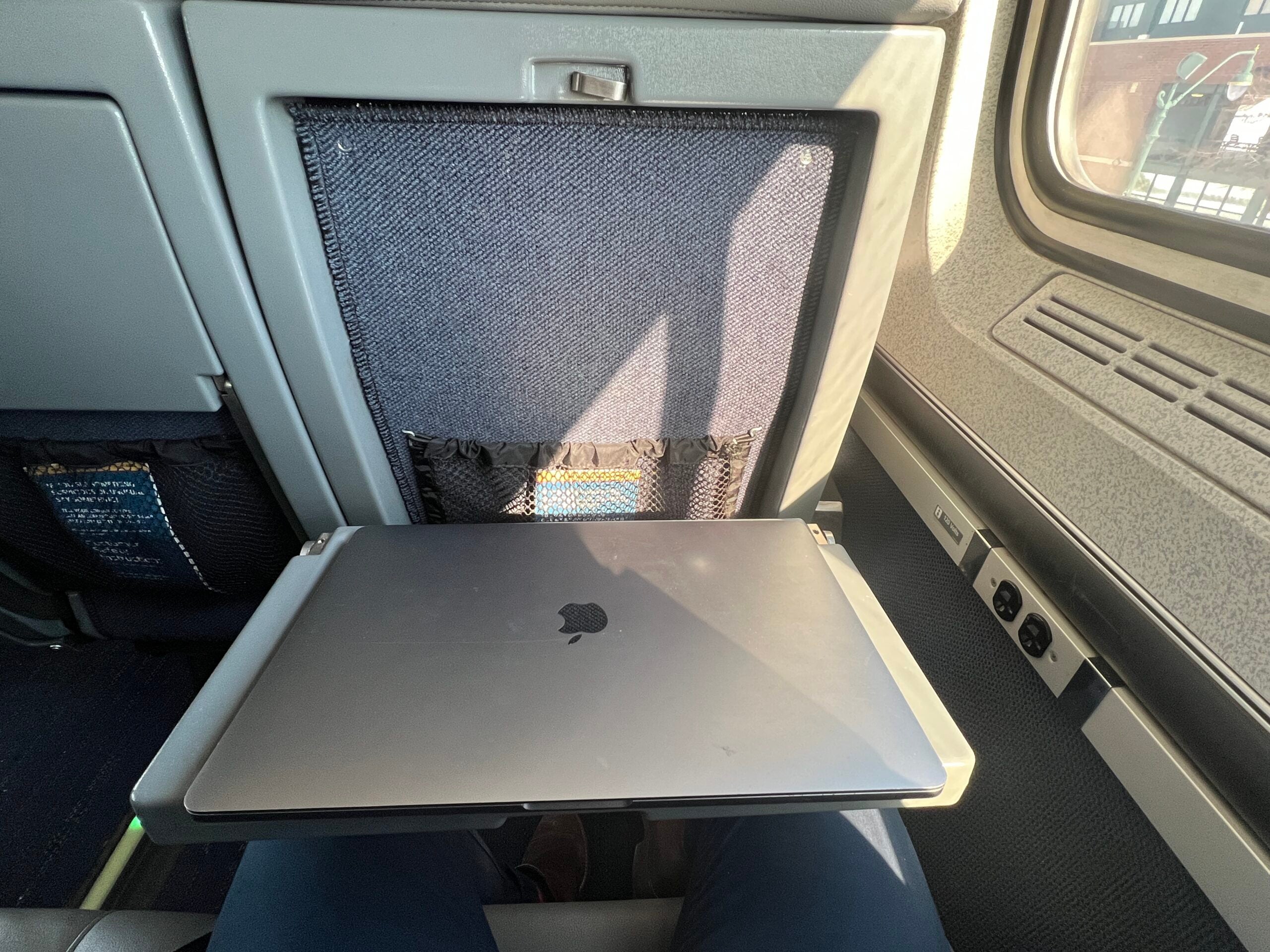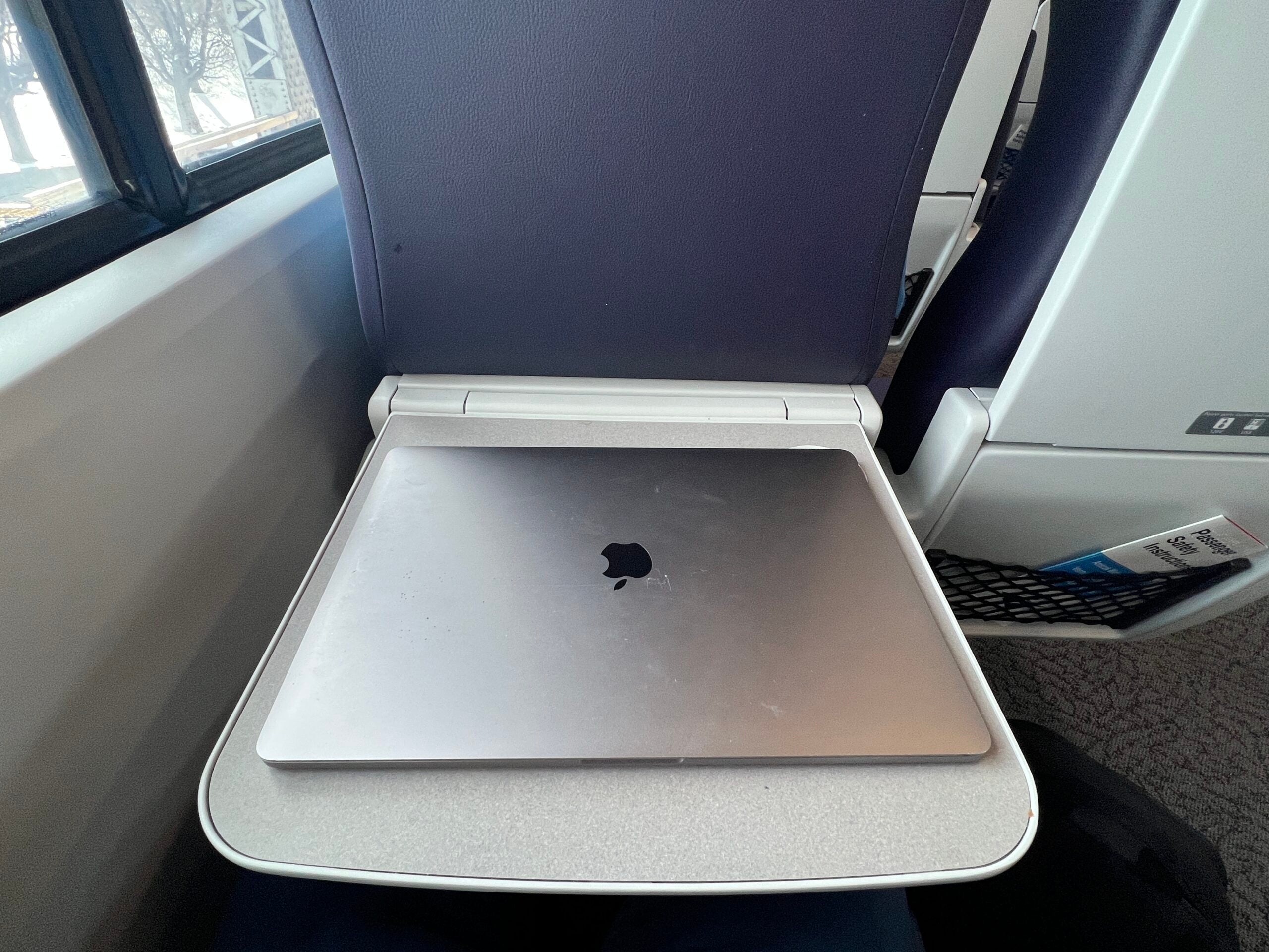 The tray table gets a nice upgrade too, with a huge surface that allowed me to not only fit my 13-inch MacBook Pro, but it also provided space for other items.
