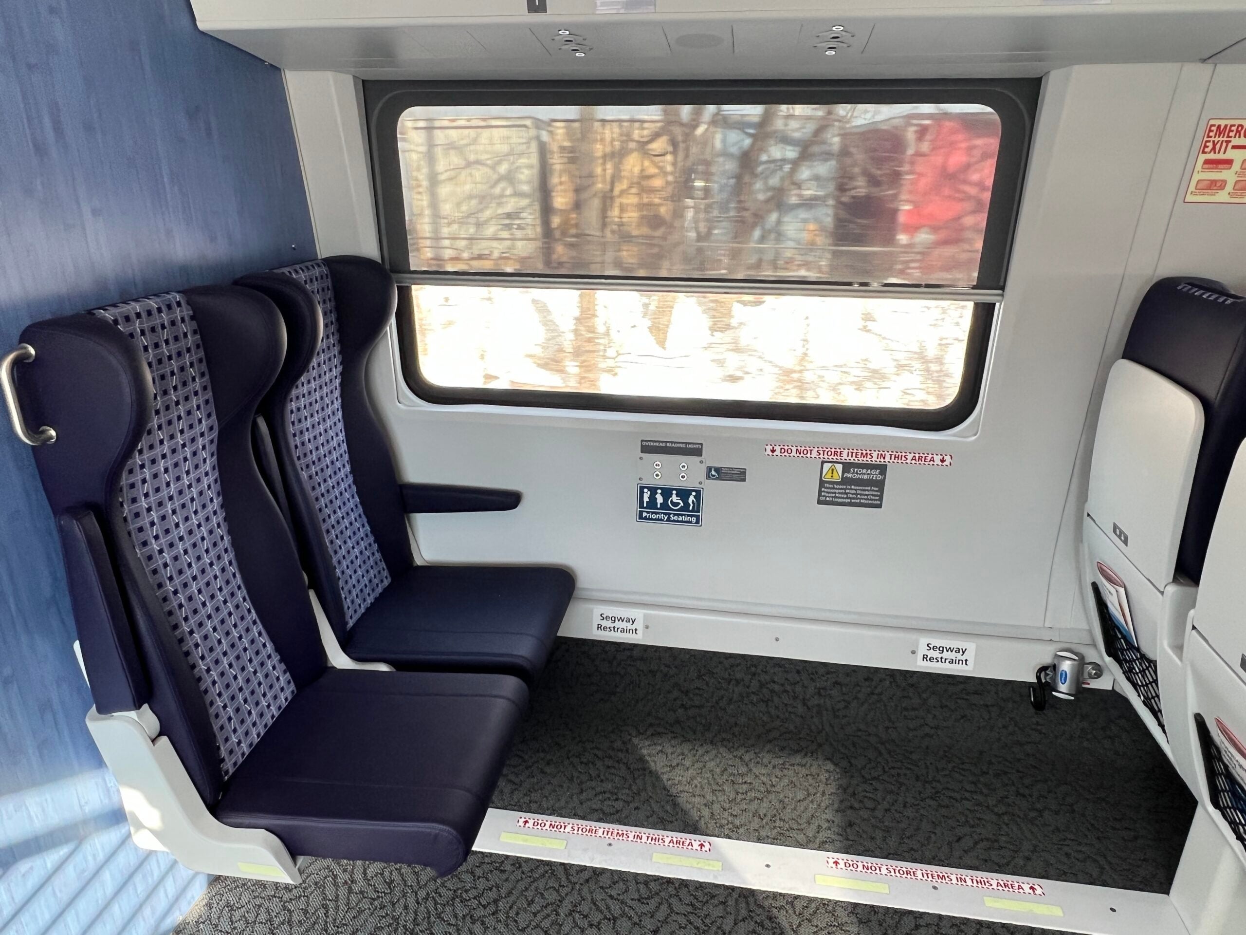 On the whole, though, accessibility is a notable improvement. Wheelchair seating and storage are also on every new car, along with restrooms that are large enough to fit a wheelchair.