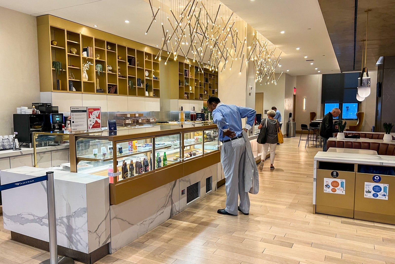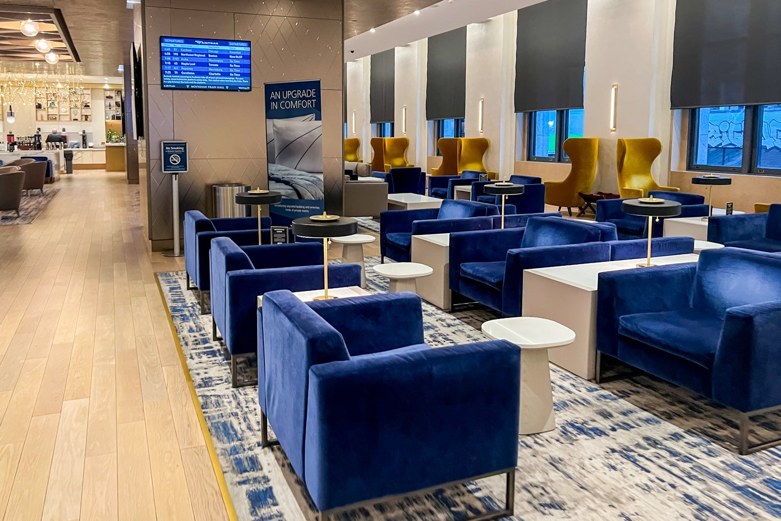 The best part of the upgrade was getting to spend a few minutes at the incredible Metropolitan Lounge inside the gorgeous new Moynihan Train Hall. You'll find a ton of seating options and free sandwiches, as well as made-to-order beverages like lattes and cocktails.