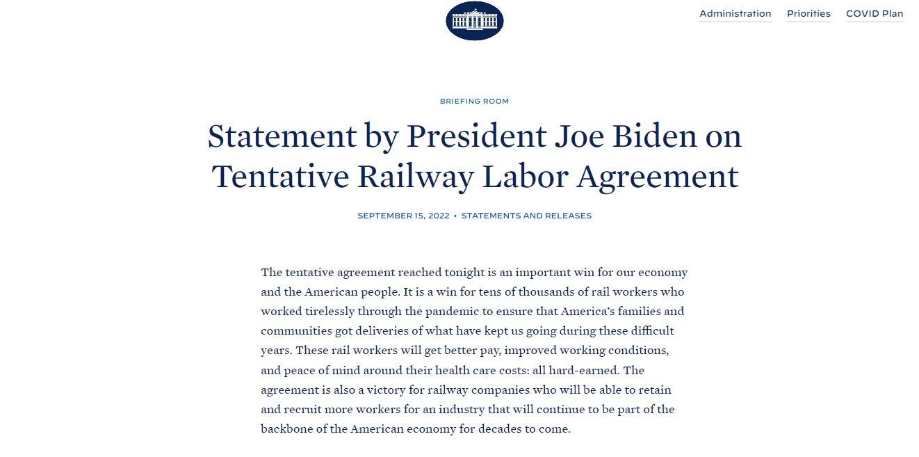 After all-night negotiations, the White House announced Thursday morning that rail companies and the rail worker labor unions had reached a tentative agreement.