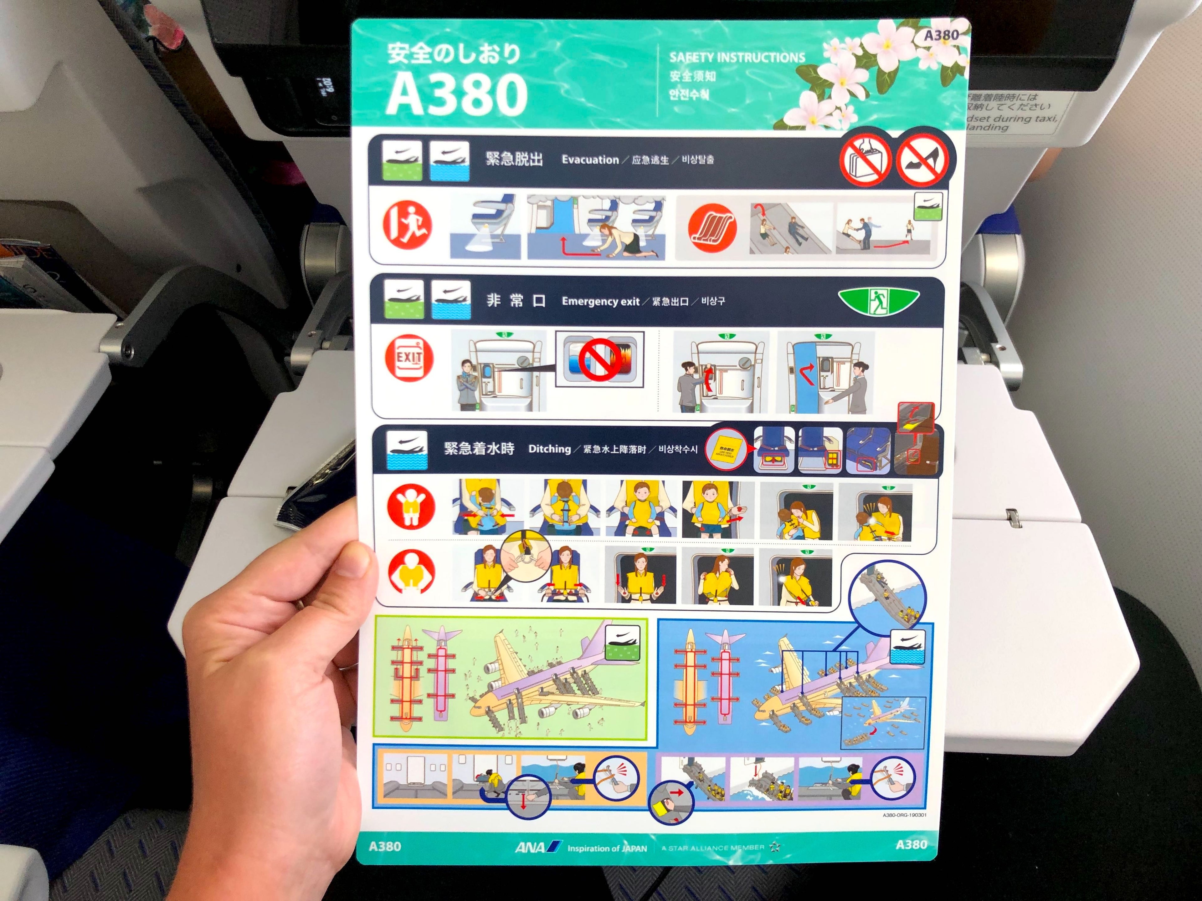 Everything on board the Flying Honu is done to cater to the leisure market. Flight attendants wear a flower in their hair with bright custom uniforms. The inflight catering is different, and the amenities passengers can expect are unique to the Flying Honu. For example, passengers seated in premium economy can look forward to a beach bag when they travel on the A380. Even the safety video features three cartoon sea turtles parading around the beaches of Hawaii, and the A380's safety card features the Hawaiian flower.