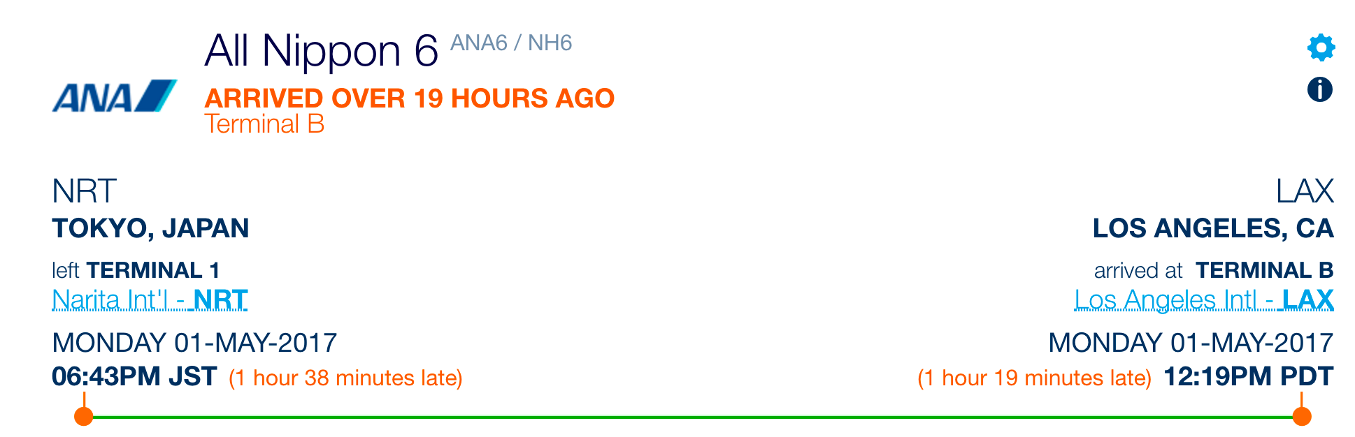 In all, ANA Flight 6 was delayed one hour and 38 minutes on its departure.