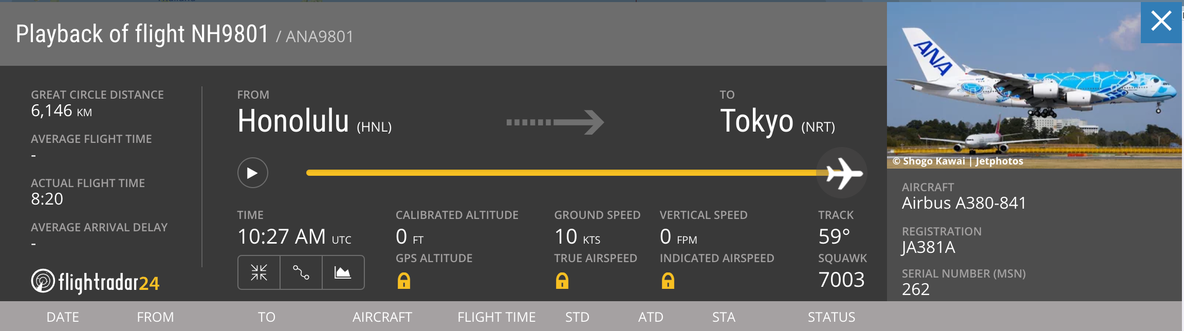 All Nippon Airways' much-anticipated service between Tokyo and Honolulu, with its new A380s in special Honu livery, is one step closer. Ahead of the May 24 start, one of the three A380s completed the first two round-trip test flights between Tokyo (NRT) and Honolulu (HNL) this week.