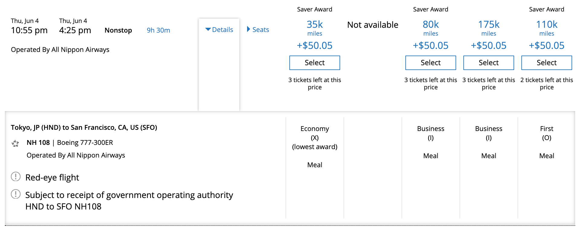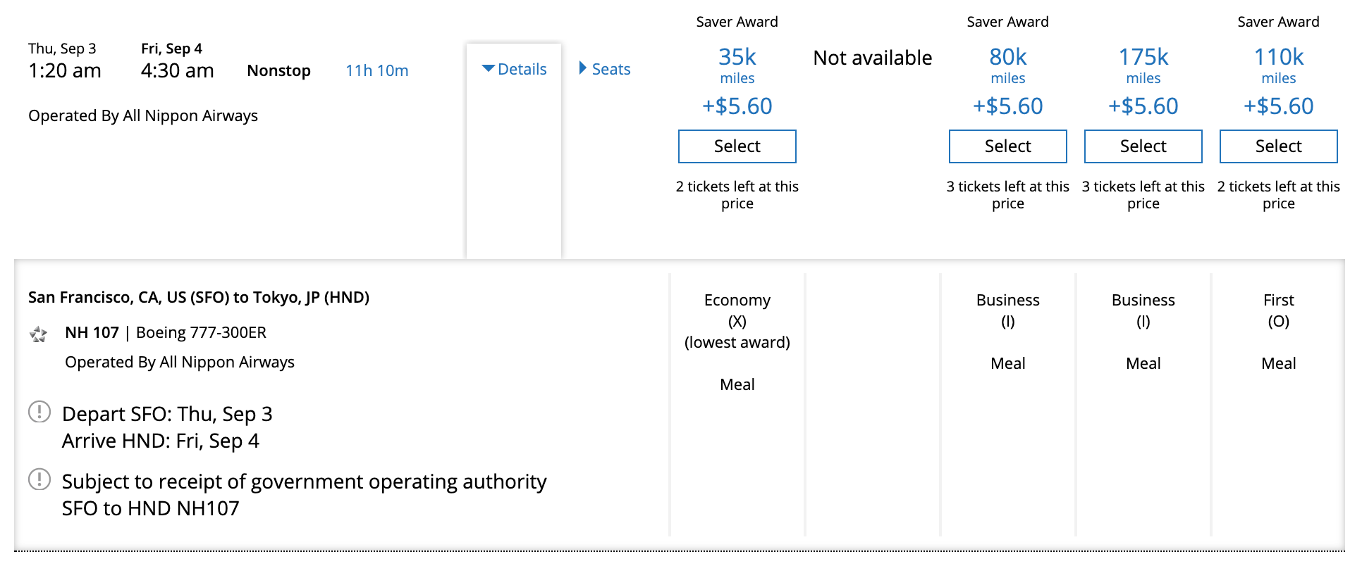 The inventory here is on ANA, a member of Star Alliance, and at the time of writing, we're seeing some relatively wide award availability from San Francisco (SFO) to Tokyo-Haneda (HND). The carrier's service from SFO has typically gone to Tokyo-Narita (NRT), but it's adding a flight to Haneda in late March. Initially operating just three times per week, the service will shift to daily as of May 25 — which also happens to be when the majority of award space opens up.