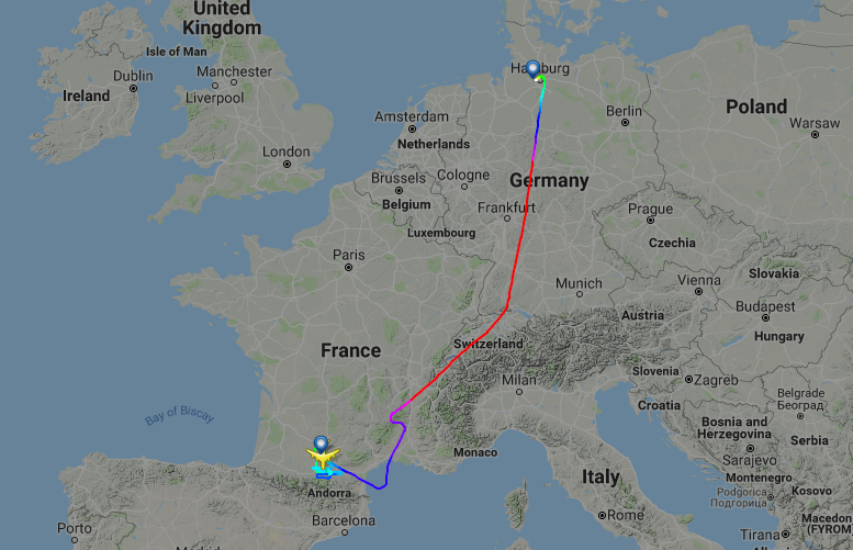 The aircraft, registered F-WWSH, flew from Airbus' Toulouse base to the manufacturer's facility in Hamburg, Germany, in about 3.5 hours.