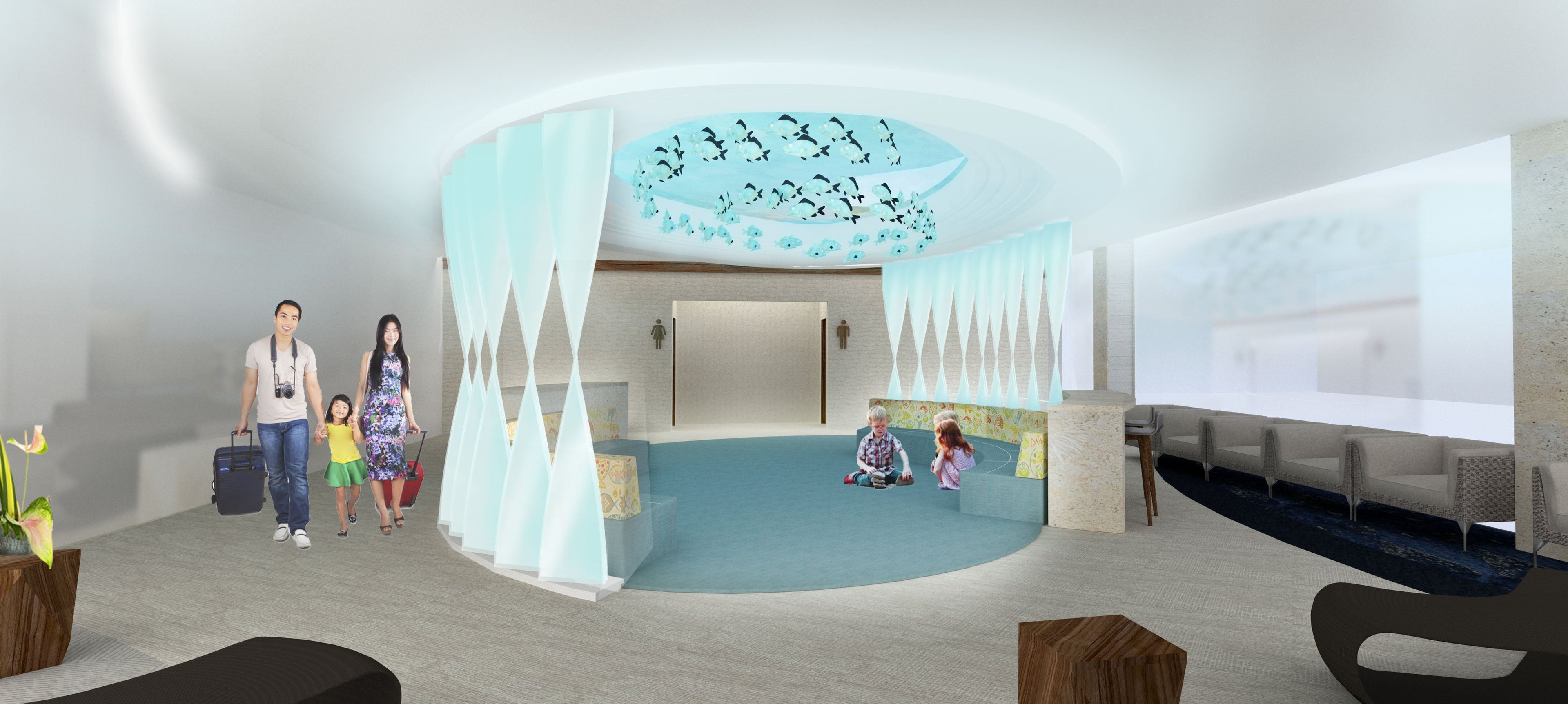 Because Hawaii is such a popular family vacation destination, the new ANA lounge will also feature a family area for passengers traveling with children. The kid-friendly section will have toys and features a stylized tide pool design.