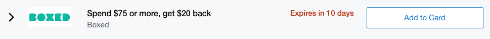 Additionally, these deals should stack when clicking through a shopping portal and with select Amex Offers. For example, on my Starwood Preferred Guest® Business Credit Card from American Express I have an offer for $20 back after spending $75 at Boxed. Stack that with 15% off and that's potentially $31 in savings on a $75 purchase. Just note that Amex Offers aren't always triggered when using your mobile wallet.
